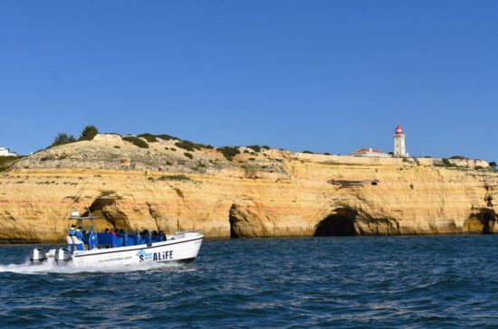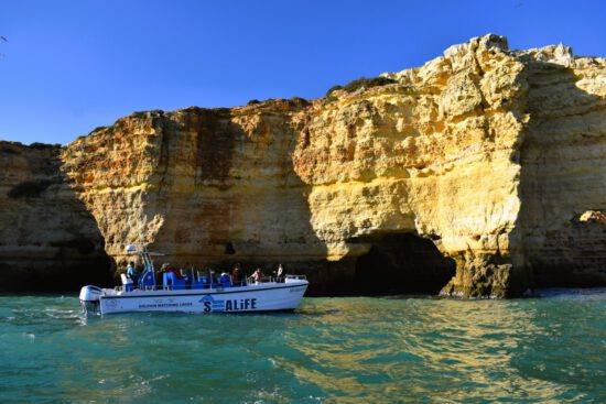 ¡Súbete a nuestro cómodo catamarán y déjate llevar por las maravillas de la costa del Algarve! Al salir de Lagos, el Océano Atlántico se extiende ante tus ojos, mientras los acantilados dorados esculpidos por el tiempo muestran toda su grandeza. Navegamos por Alvor, Portimão, Carvoeiro y Algar Seco, donde la naturaleza exhibe su arte a través de formaciones rocosas impresionantes.