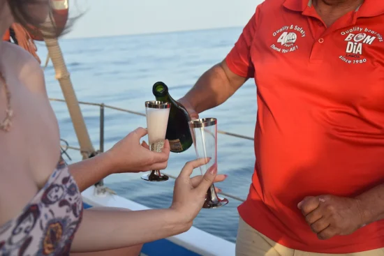 Departing from Lagos Marina, end your day, on the ocean, taking in all the colors of our beautiful sunset on board our tradicional Portuguese sailing boat!