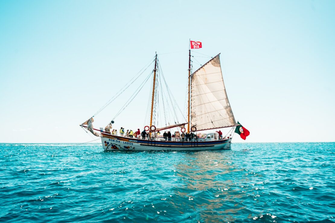- Traditional sailing sunset tour with Prosecco – 2h: Departing from the Marina of Lagos, finish your day in the ocean, enjoying all the colors of our beautiful sunset aboard our traditional Portuguese sailboat. Our experienced crew will welcome you with a bottle of fresh Prosecco while relaxing and contemplating the magnificent Golden Coast of Lagos on this tour.