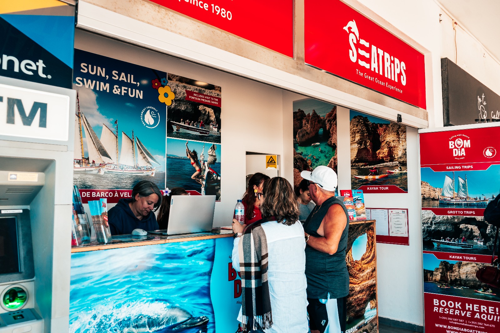 - Presencialmente na Marina de Lagos: Se já estiver em Lagos, pode visitar-nos no nosso ponto oficial de embarque. Teremos todo o gosto em recebê-lo, esclarecer dúvidas e apresentar-lhe as melhores opções. Estamos localizados na loja 10.